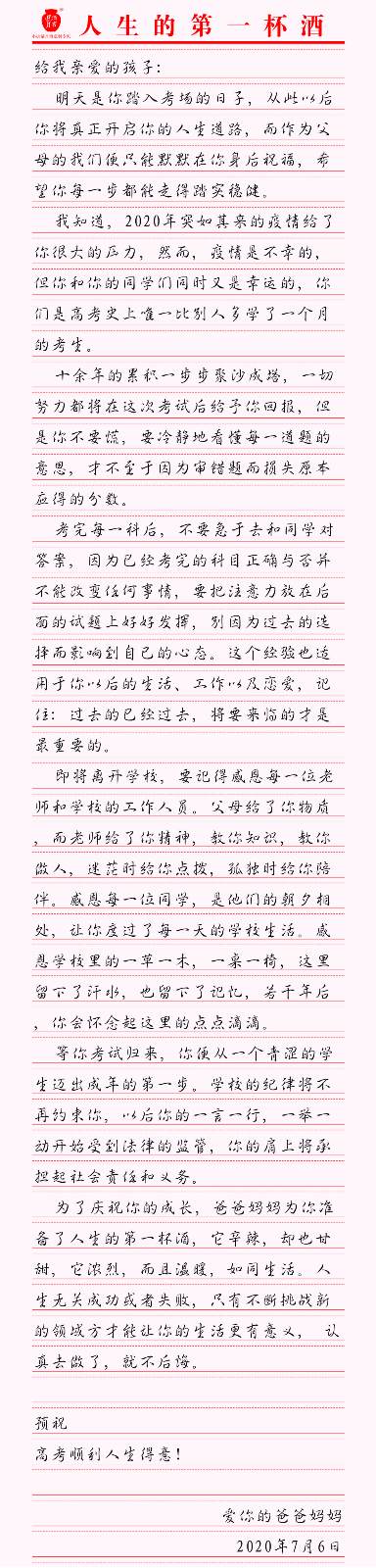 高考前夕,一位父親寫給孩子的一封信!