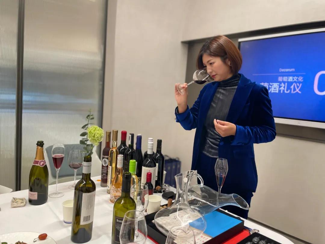 從新酒、老酒的不同開瓶工具到“三刀開瓶法”的展示、倒酒,分門別類的為大家講解商務場合葡萄酒的相關禮儀知識。