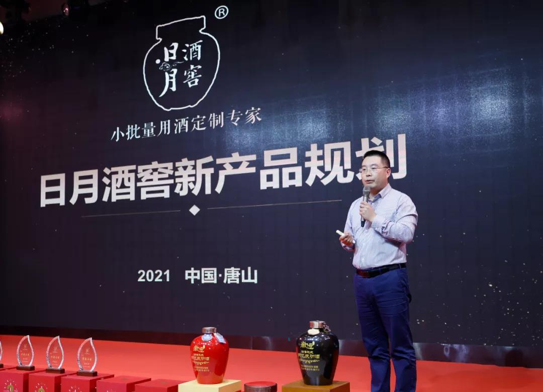 日月酒窖總經理鄧煜做新產品宣講,虎運吉、1886、照鑒、全新定制包裝......運用幽默的話語,妙語連珠間將2022年日月酒窖規劃的產品為大家一一呈現,客戶們也紛紛表達了急切想要見到新產品的愿望。