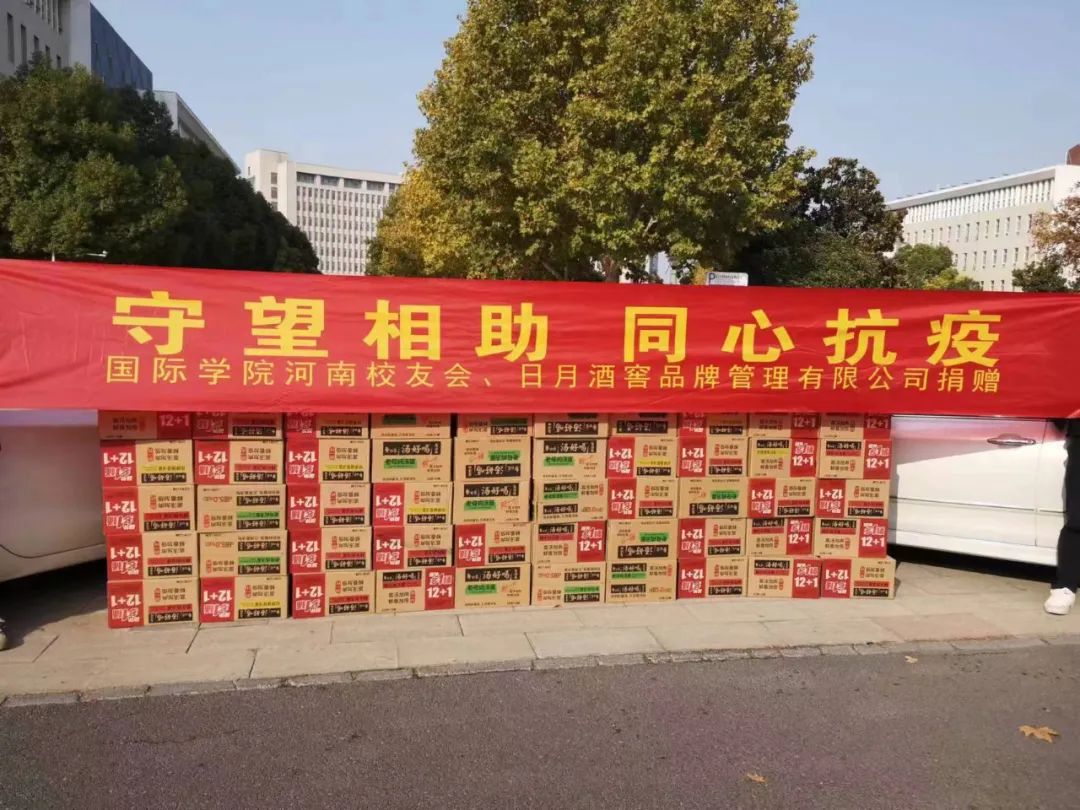 因此,為助力河南工業大學校內防疫工作,日月酒窖主動承擔社會責任,聯合國際學院河南校友會踴躍捐贈物資。