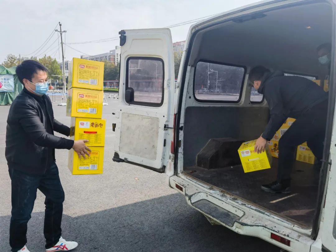 身為國際學院河南校友會成員、日月酒窖副總經理,韓勝利韓總身先力行,下沉至河南工業大學抗疫一線。與工作人員一起積極對接協調,捐贈方便面、牛奶、面包等物資,為疫情防控盡我們的綿薄之力。